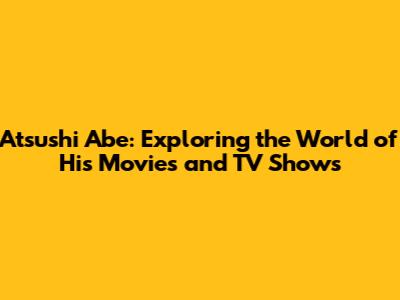 Atsushi Abe: Movies, Shows, And Where To Watch