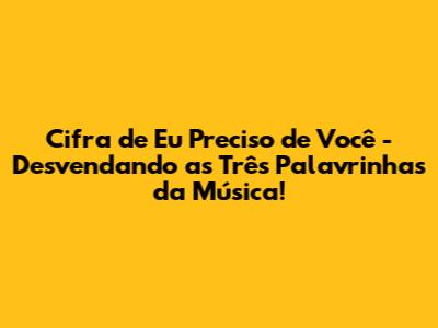 Hey pessoal! Se você, assim como eu, adora a música 'Eu Preciso de Você', e sempre quis tocar essa canção incrível no violão ou guitarra, você chegou ao lugar certo! Neste artigo, vamos mergulhar de cabeça na cifra de 'Eu Preciso de Você', facilitando ao máximo o aprendizado para que você possa tocar essa música linda em três palavrinhas: 'Eu preciso de você'. Prepare-se para desvendar os acordes, as dicas e tudo o que você precisa saber para tocar essa canção emocionante. Bora lá?