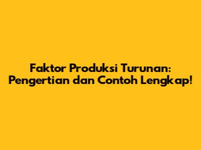 Apa Itu Faktor Produksi Turunan?
