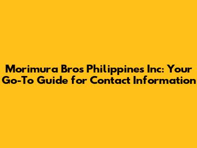 Morimura Bros Philippines: Contact & Key Information