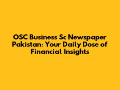 OSC Business Sc Newspaper Pakistan: Your Daily Dose Of Financial Insights