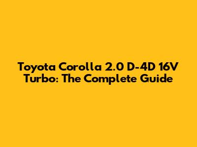 Toyota Corolla 2.0 D-4D Turbo: Ultimate Guide