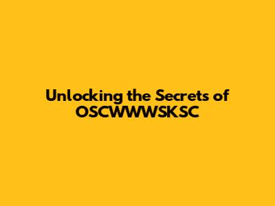 Unlocking The Secrets Of OSCWWWSKSC